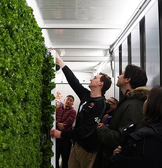 To grow food at scale in this harsh climate, we have turned to a Freight Farm – a state-of-the-art, hydroponic, vertical farm housed in a shipping container. No matter the outside extremes, inside conditions are climate controlled, and perfectly suited to the plants we grow. The Freight Farm is capable of growing 990 heads of organic, pesticide-free, non-GMO lettuce every week of the year on just 5 gallons of water per day – an astonishingly efficient system that redefines sustainability!