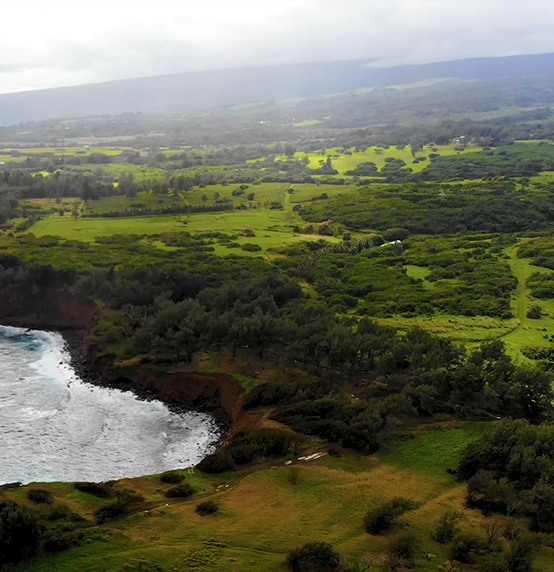 This land was home to King Kamehameha’s lush food forests, teaming with produce to feed his army. Today, these significant agricultural lands tell a different story—windswept and tangled with lantana and invasive saplings, a stark testament to scars left by the sugar cane industry. Scraped, and burned for a century, and ultimately abandoned in 1970, the land has spent over five decades in recovery.
